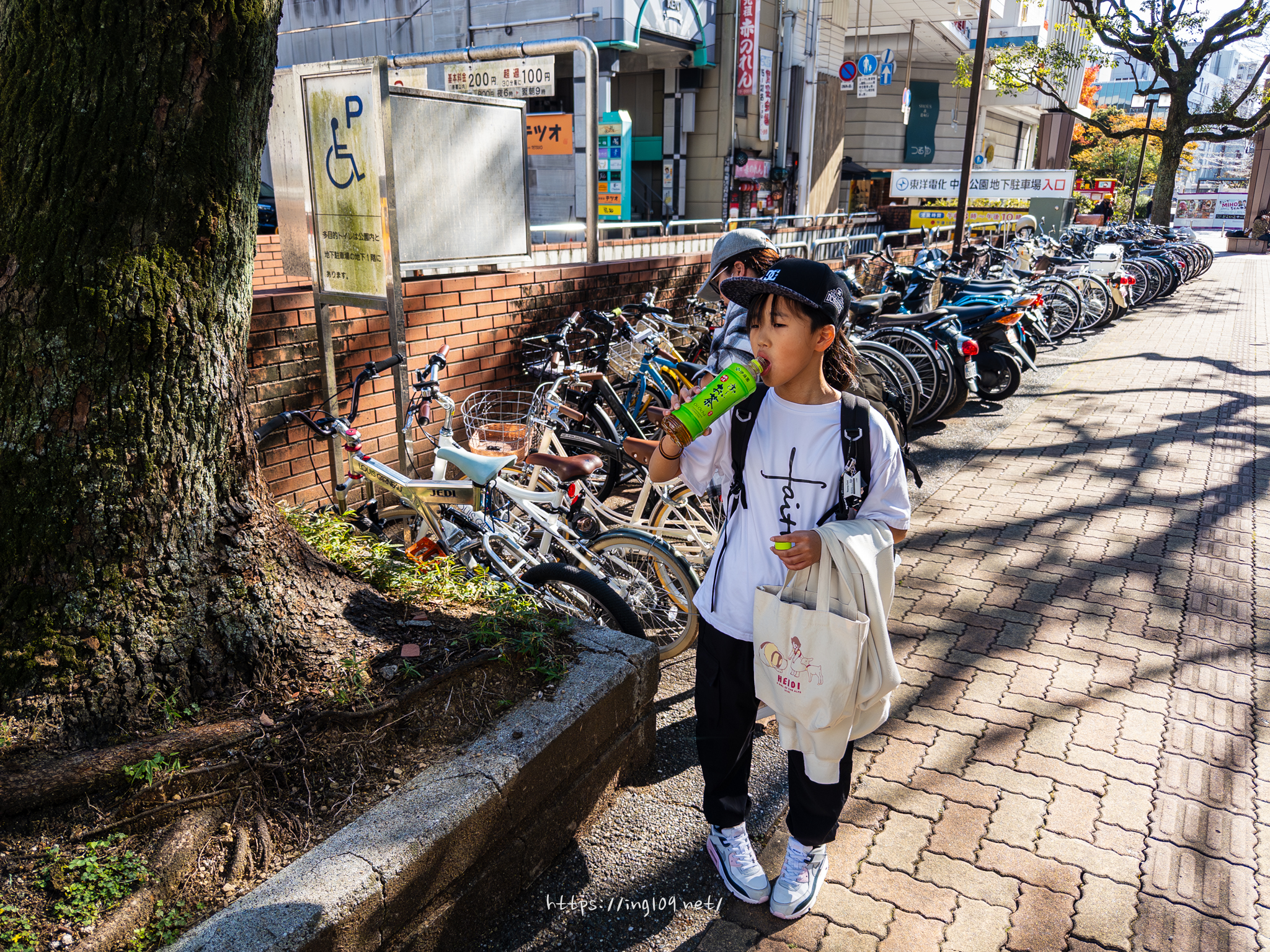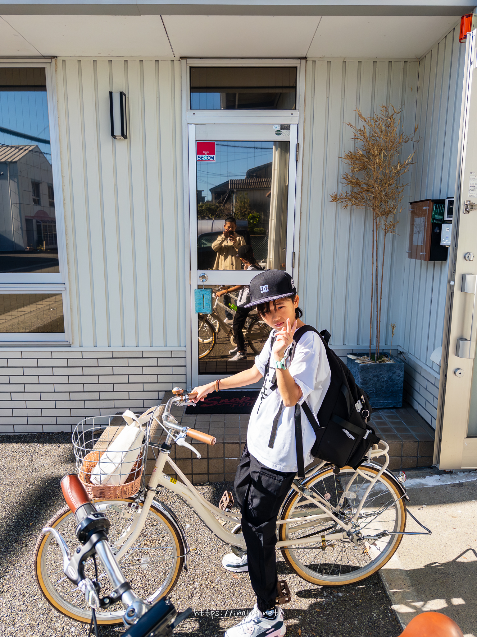 駐輪場に自転車を停めて