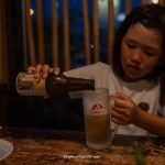 娘は子供ビールを飲みながら