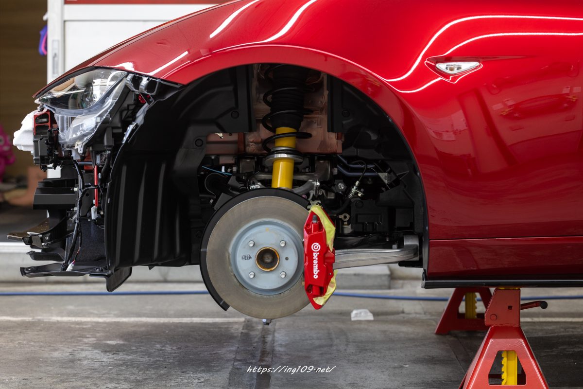 バンパーとホイールを脱着作業
