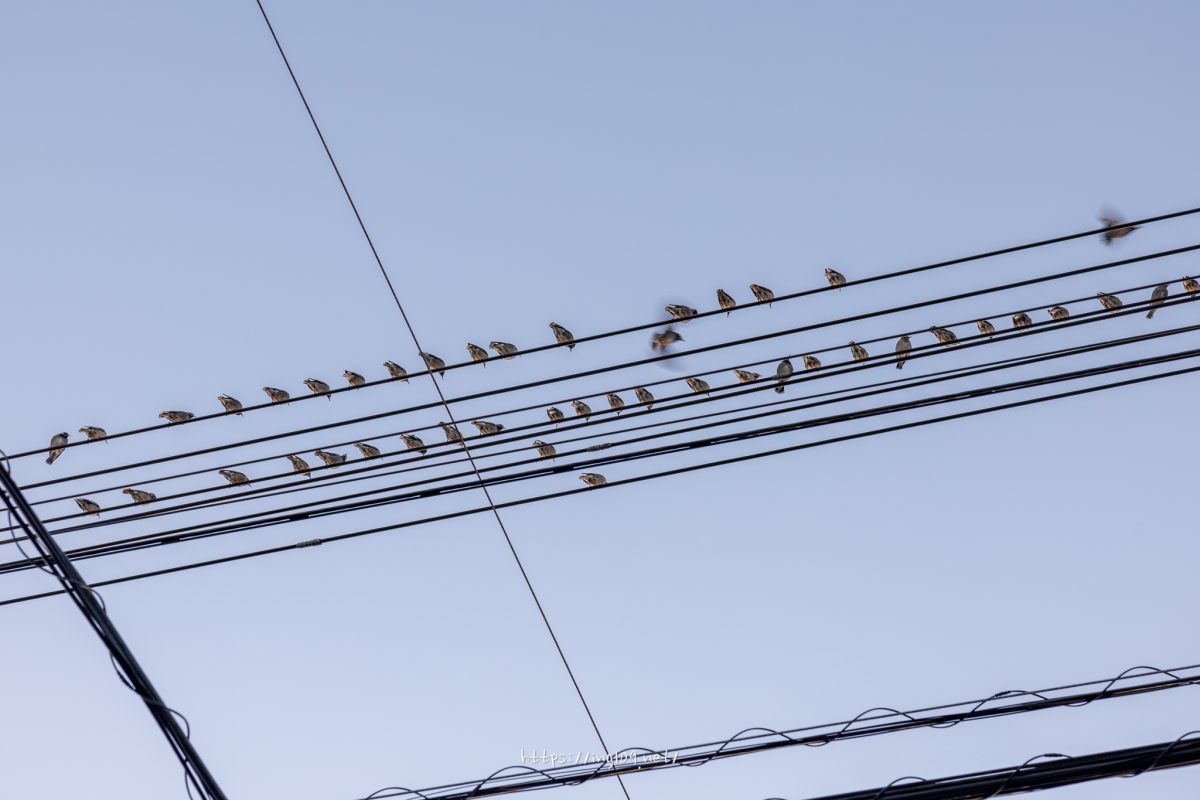 歩き始めて電線を見ると