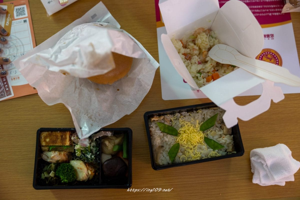 機内で提供の食事もテイクアウトしたので