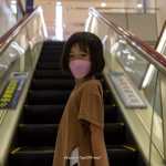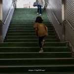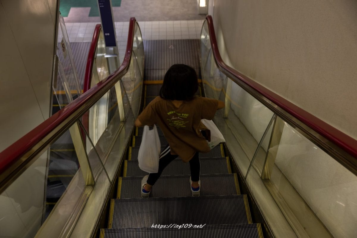 エスカレーターを下っていました。