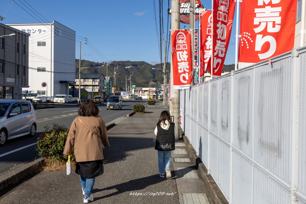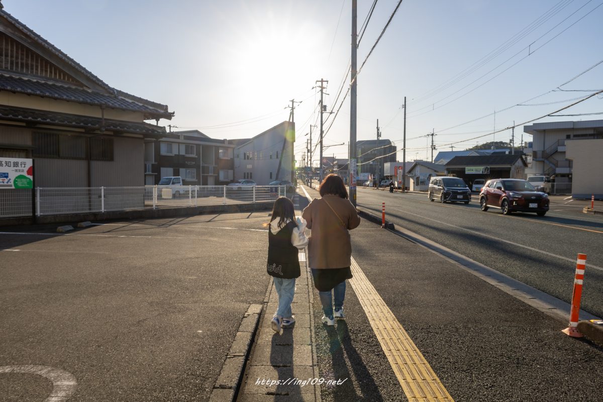 頑張って歩いてトンカツ屋さん行こうって