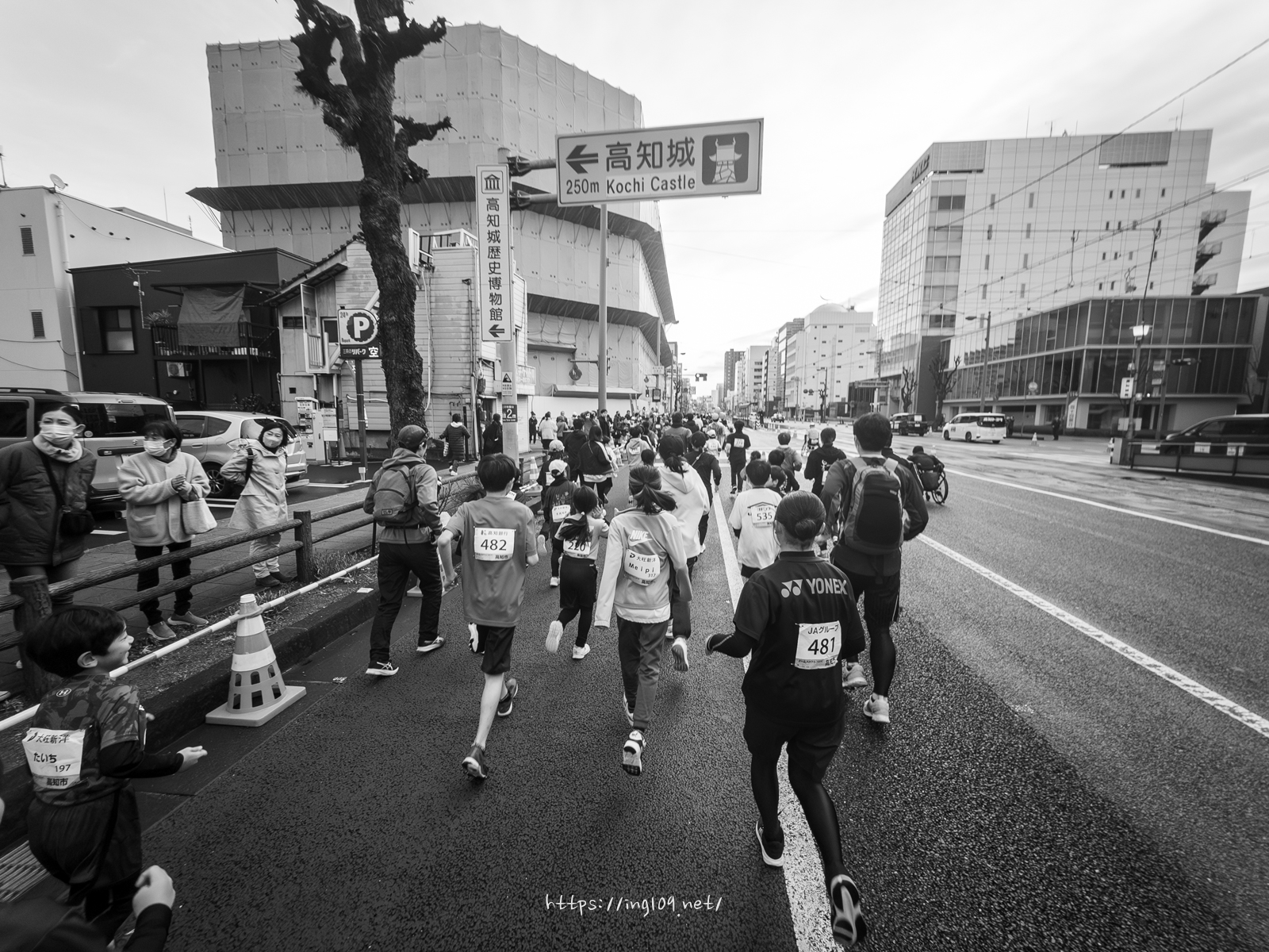 ランナーが走っている道路に出てまで