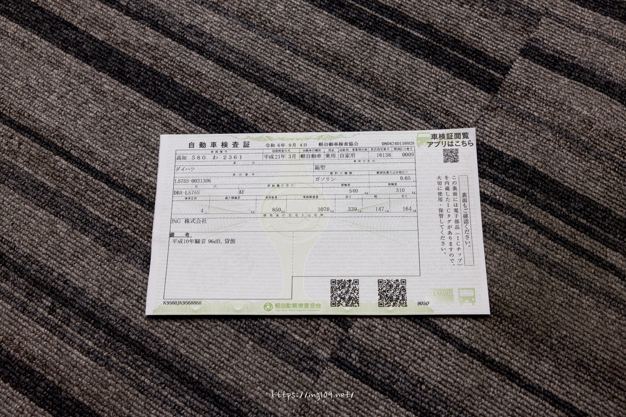 軽自動車の車検証も